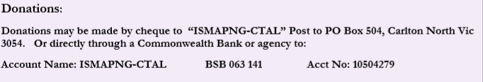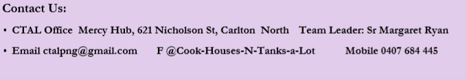 Many thanks to all our kind donors for 2019 as we now have almost $5000 in our CTALPNG bank account which is enough to cover the estimated retail cost of the stoves. Keep up the good work as we shall need to pay for transport to the villages and also for a sink and shelves for Pumakos cookhouse. Then we should be free to concentrate on fundraising for one for the Southern Highlands.