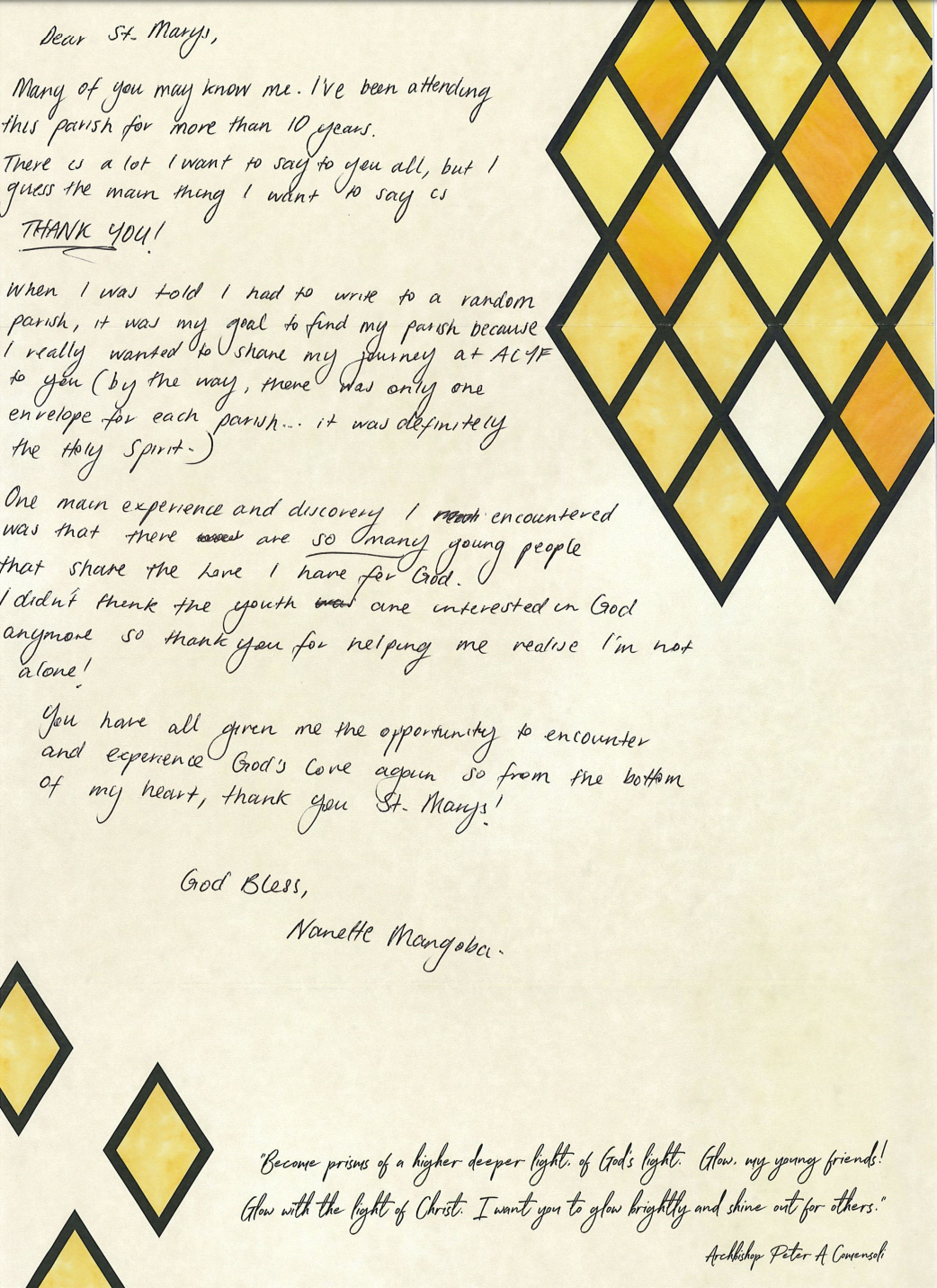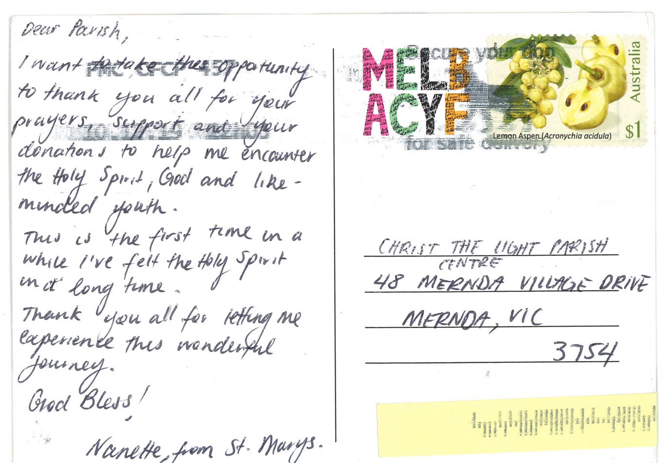 Our Seven ACYF pilgrims, Makelita Tevaga, Dayne Manucchoc, Emily Selar, Mary Selar, Nanette Mangoba, Mark Mangoba and Maria Joseph are so exited and energetic after attending the Australian Catholic youth Festival Last December 2019 in Perth. They express their sincere gratitude and belongingness to the support and the encouragement of the parishioners of the Christ the Light Parish.